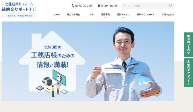南陽吉久株式会社(代表取締役:中村正治)は、7月1日より工務店様やハウスメーカー様向けの、お役立情報サイト「北陸新築・リフォーム補助金サポートナビ」を新たにオープンいたしました。