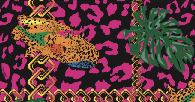 連続的につながれた鎖のような柄は、人と人を結ぶ良縁を意味し、人間関係を豊かにする文様としての想いも込められています。そんな吉原つなぎとイタリア・ミラノ発祥のヒョウ柄を合わせました。ヒョウ柄が日本のファッション界で脚光を集めたのは高度成長時代の1970年代。 以降、欧州系ブランドが2004年秋冬コレクションで新作を競ったのを受け定着しました。大阪=ヒョウ柄が注目され始めたのは1980年代です。