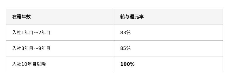 本制度により、在籍年数が長くなるほど給与還元率が上昇し、