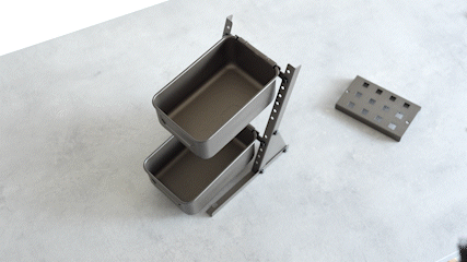 標準スタイルはラック+ボード+ハンドビンのセットですが、ハンドビンが2つあれば2段ラックとして使うことができます。