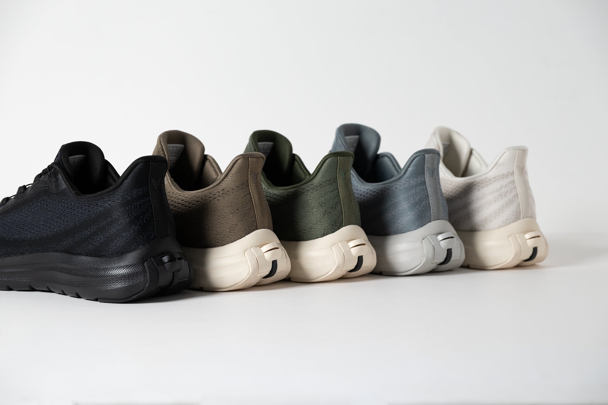 踵のローラーを引くだけで自分の足にアジャストできるZerotieフィットテクノロジー搭載のupalee「PARTNER」は、フィット感まで手を使わずに調節可能な究極のハンズフリースニーカー。
