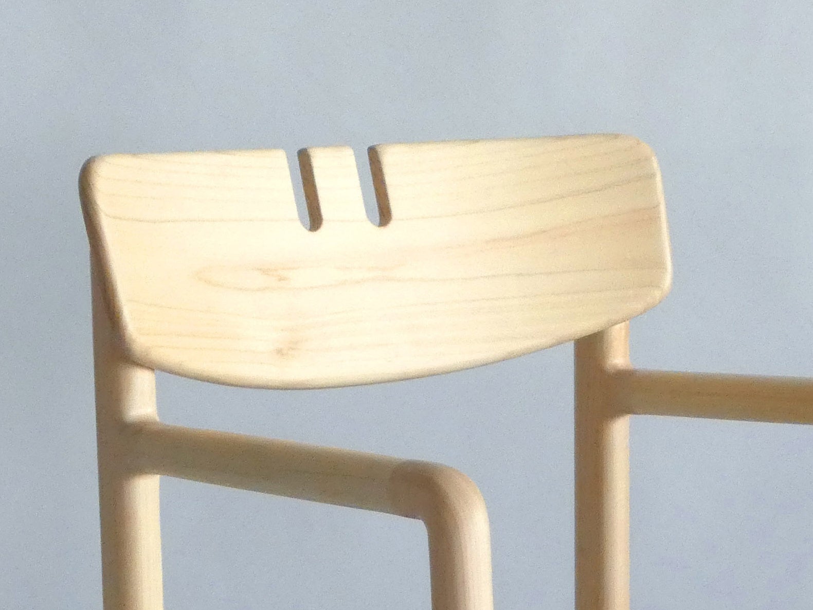 直材をメインに曲線を取り入れたオーガニックなかたちが印象的なチェアは、植物園のレストランでの様々な使用状況にマッチする。県産ヒノキを使用し県内企業が加工製造、それを地域の施設が使用するという産業循環創出の好事例といえる。背もたれの形状はフックとして便利に使えそうだ。