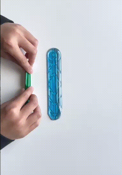 ニンジャ定規は、スノーボードの設計思想を文房具へと応用し、単なる計測ツールに留まらない、動きのある定規を実現。特に“ペンを弾いて飛ばす”という遊び方を前提に設計されており、机上でのジャンプやトリックを可能にした初の定規です。