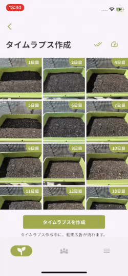 収穫までの写真を繋げてタイムラプス動画にすれば、育て始めから栽培終了までの記録を動画のように見返すことが可能です。