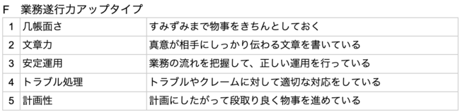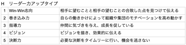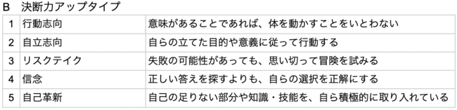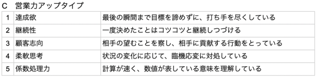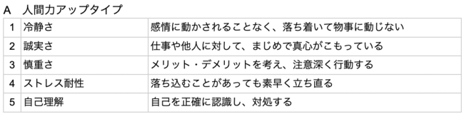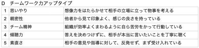TOP5の結果を見ると、診断結果で「D.チームワーク力アップ」と「A.人間力アップ」に分類したコンピテンシーが2つずつランクインしています。