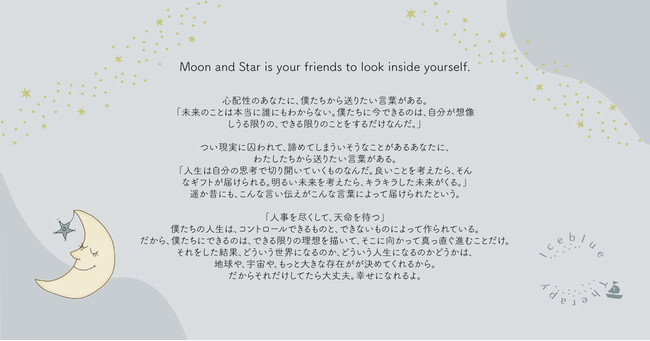 「Iceblue Therapy Note」は、あなたのためのセラピージャーナリングノートです。ジャーナリングを進めると、まるでセラピーを受けたかのような穏やかで軽やかな気持ちに、望遠鏡と月星が導いてくれます。