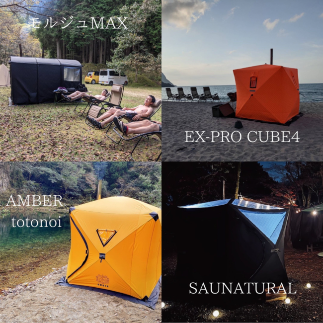 最大12名入れるモルジュMAXから10台以上様々なテントサウナとサウナ小屋が大集結