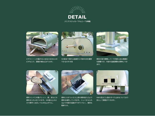 本体にはカリフォルニアの大自然をイメージしたグリーンカラー 、持ち手には天然ウッドを使用したポータブルピザ窯 "CHIMNEY”が、アメリカ販売に先立ち日本先行発売!