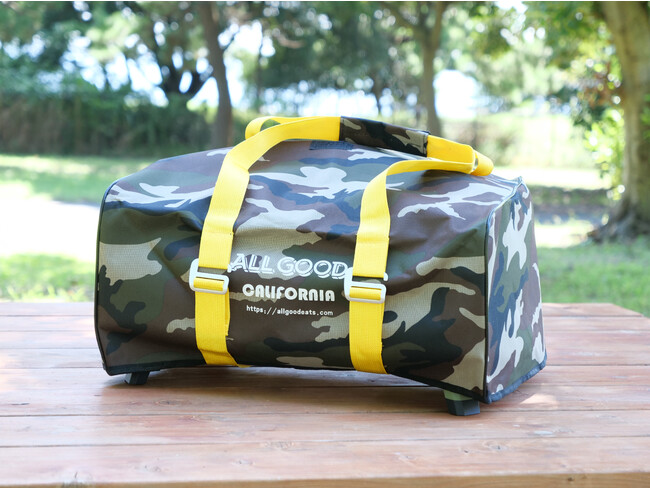 日常的にガーデンパーティーが行われるカリフォルニアで、今話題沸騰のポータブルピザ釜。わずか12kgの本体で400° 以上の高温で焼くピザは、本場イタリアナポリで食す外はカリッと、中はもちもちした食感の焼き具合が簡単に[A2] 再 現できます。木質ペレットや薪、炭で気軽に調理ができ、肉や野菜も短時間でパリッとした焼き上がりで、プロ料理人の 仕上がりに!機能性の向上に研究を重ねデザイン性も重視しながら、特殊断熱材”セラミックファイバー”を用いて庫内 温度が下がらない工夫を施しています。 この度、日本の皆様にいち早くお試しいただきたく先行発売を決定しました。限定ALLGOODオリジナルレザーグローブ 、ピザカッター、木製ペレット2kgをプレゼント!ご購入後すぐにお使いいただけます。 ALLGOODオリジナルカモフラージュキャリーバッグと煙突カバーも付属していますので持ち運びも楽々。キャンプやB BQ、ガーデンパーティーに是非ご活用ください。