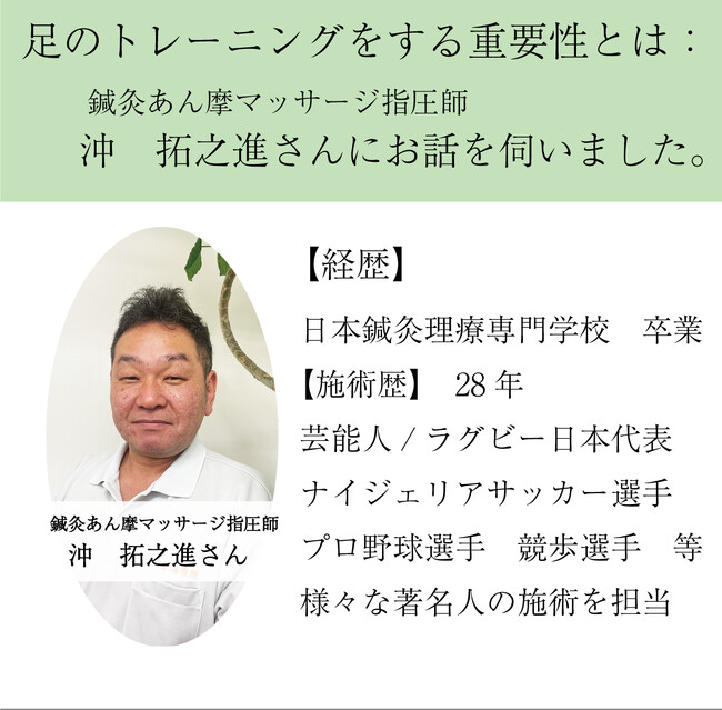 生活を送るうえで、歩くことや走ること、またスポーツをする際にも、足裏で地面を捉え体のバランスをとっています。