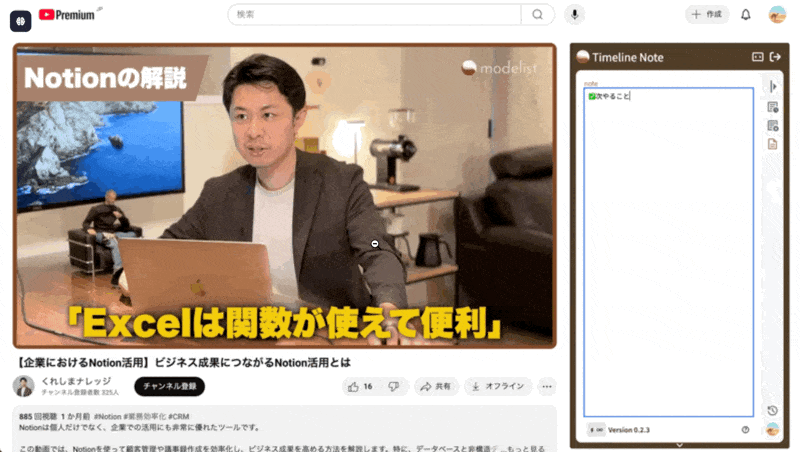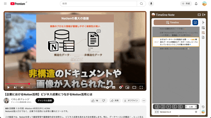 【YouTube動画がビジネスリソースに!】 Chrome拡張機能「YouTube Timeline Note」をリリース。毎月10本の動画を、無料でオリジナルのビジネスドキュメントにアップデート!
