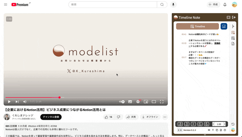 株式会社Modelist(本社:東京都、代表取締役:呉縞慶一)は、YouTube動画視聴体験を一新するChrome拡張機能「YouTube Timeline Note」を2025年3月23日にリリースしました。