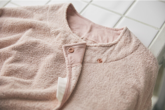 肌触りの良いタオル生地を使用した、さっと羽織れる便利なガウン。お子様と一緒の慌ただしいお風呂上がりや自分時間をほっと一息をついて過ごしたい時など、きっと馴染みの薄いアイテムだからこそ、生活に寄り添えるよう使いやすさにこだわりました。