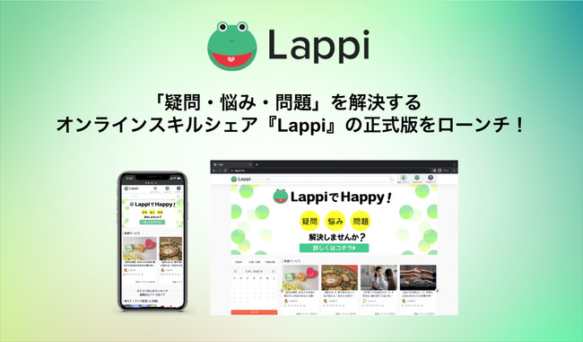 株式会社Lappi(代表取締役 高橋真二)は2022年6月10(金)、誰もがスキルシェアができる「疑問・悩み・問題」を解決するオンラインサービス「Lappi」をローンチ致しました。
