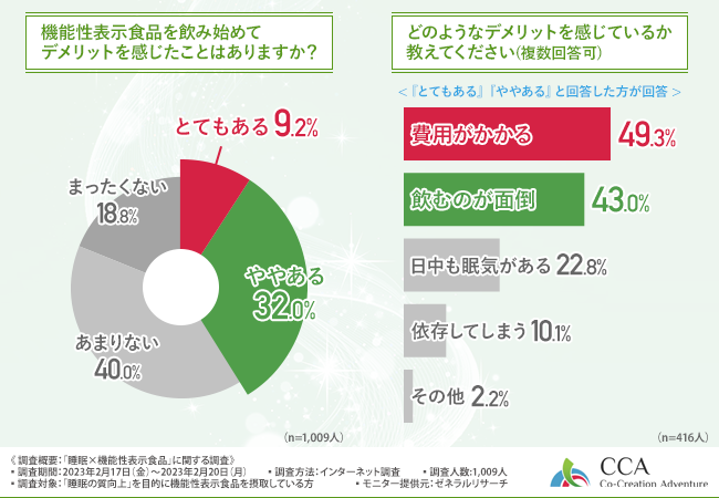 【睡眠×機能性表示食品】7割以上が睡眠の質に変化があったものの、費用がかかるといったデメリットを感じている方も多い