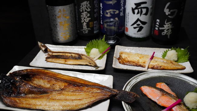 日本酒が進むように、焼き魚、煮付け、刺身、揚げ物などの調理法で提供する。