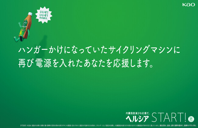CM放映と同時に、都内8路線という規模での電車ジャック広告を展開します。健康行動の周辺に存在する「あるある」や「本音」を題材に、ヘルシアたちによるチャーミングな応援メッセージを数多く掲出していくものです。通勤/通学中の方々に対して、様々なメッセージによりヘルシアの個性を伝達していきながら、車内で過ごす時間の中で「肩に力の入っていないヘルシー行動」への、きっかけを作っていくための応援をしたい、と考えています。