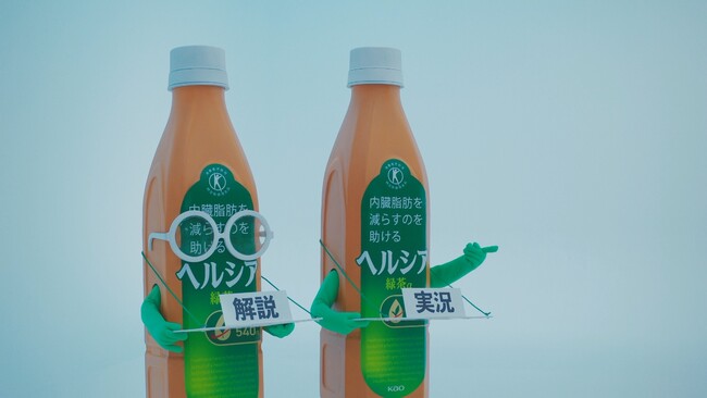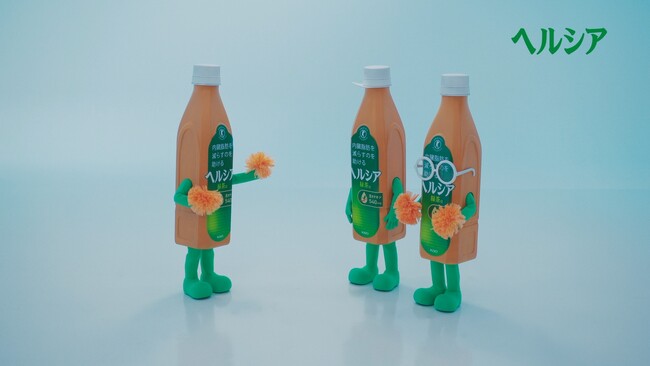 新CMには、ヘルシーライフを応援する存在として3体のヘルシアキャラクターが登場します。ヘルシアの機能説明だけでなく、皆様のヘルシーライフを楽しく盛り上げながら応援していく存在として設定。声の出演にはテレビアニメ「スキップとローファー」のヒロインみつみ役等でも活躍する黒沢ともよさんをはじめ、俳優の竹井亮介さん、武谷公雄さんを起用。キャラクターたちを通したちょっとゆるめの会話劇を通して、人々の健康習慣に寄り添う姿勢を打ち出していきます。