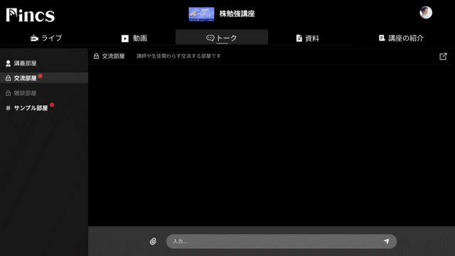 Fincs(フィンクス)は現役投資家から「ライブ」「動画」「チャットトーク」「資料」を通じて実践的で鮮度の高い投資の学習ができる場です。
