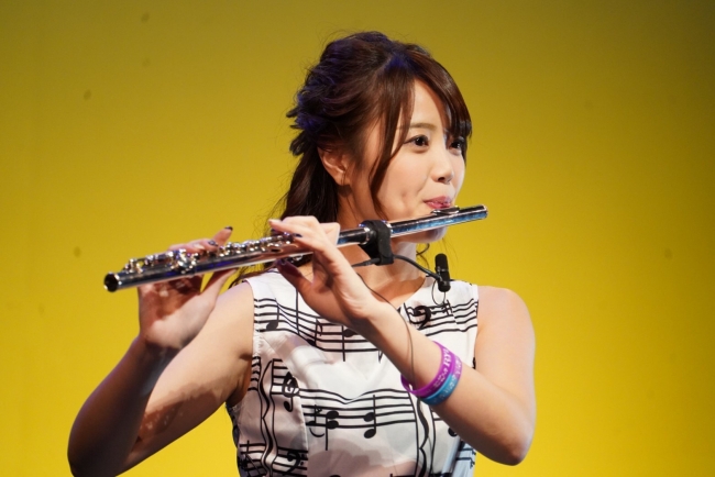 場内を圧倒したのはYURIKAが奏でるピアノとフルートSUAIとのアンサンブルによる「きっとこれが恋ね」「明日、晴れるかな?」「Do You Remember Me ?」のボーカルメンバーとのアコースティックヴァージョンだ。
