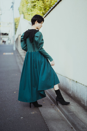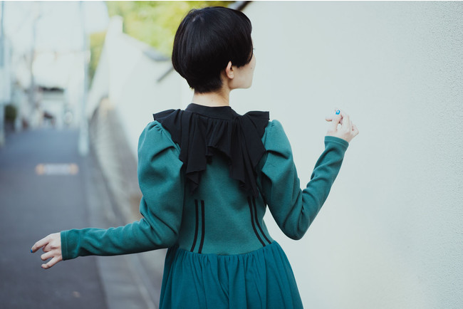 「コロナ禍によるライフスタイルの変化で、わたしたちがいつも着ていたいと自然に望むファッションのイメージも大きく変化したと体感があります。まるで部屋着の居心地で、リラックスして街を過ごせる……私がかつて作っていたジャージ素材のドレスが、今、再び必要になっている。そう考えました。」