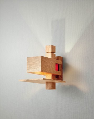 本シリーズは、ランプを覆ういくつものブロックで制御された上下方向の光がさらに遮光板に反射し、間接光の心地よい明るさが得られます。消灯時においても抽象彫刻のようなフォルムは、空間に圧倒的な存在感を放ちます。通常、TALIESIN(R)の支柱にはライトが好んだチェロキーレッドの装飾を施していますが、オークモデルには一か所のみに施しました。インテリアとのコーディネートのしやすさと、ライトのアイデンティティを両立させています。