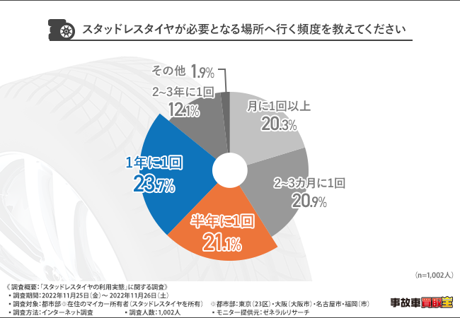 スタッドレスタイヤが必要な場所に行く頻度