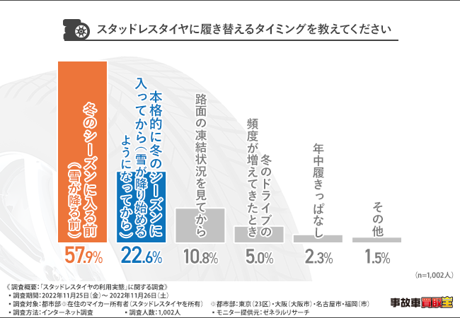 【調査対象】都市部※在住のマイカー所有者(スタッドレスタイヤを所有)