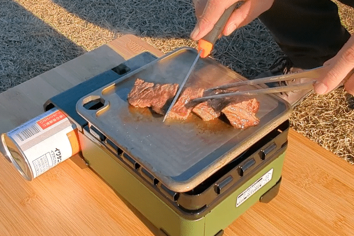 汎用性の高いフラットな裏面裏面はフラットになっているので幅広くシングルバーナーや卓上コンロで使用できます。手軽に本格的なバーベキュー料理を楽しむことができます。