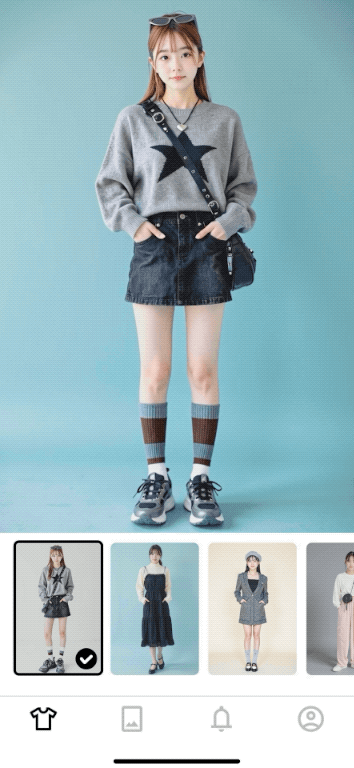 - 自撮りとコーデを選ぶだけでAI試着が完了