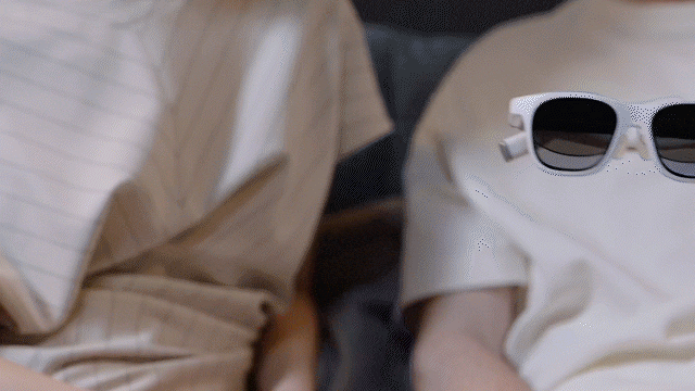 グラスをかけると3m先に135インチ相当のフルHD(1920x1080)大画面、さらに最大120Hzのリフレッシュレートと4000nitsの輝度*で、まるで目の前に広がる現実のような没入感を実現しました。かつてない迫力と繊細さで、映画やゲーム(2D/3D)をお楽しみいただけます。