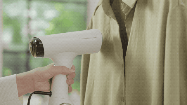 アイロンがけの際、従来の衣類スチーマーのように衣類を引っ張る必要がないため、片手で操作可能で、火傷しにくいです。また、襟元・袖口・裾といった見た目の印象に関わる部分まで繊細にケアできます。