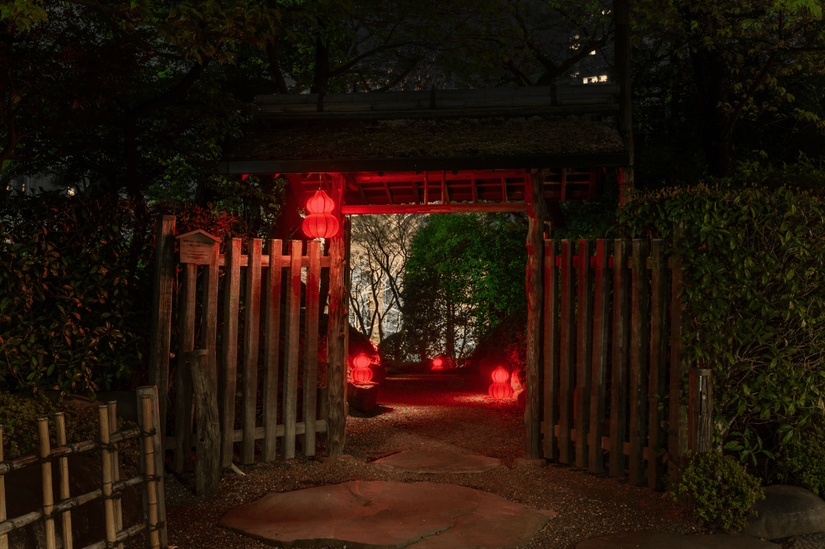 会場までの道のりは、Qeelin のシグネチャーコレクション Wulu の形のランタンが点在し、道しるべとなりながら、庭の初春の花々まで続き、ゲストを幻想的な空間へと誘いました。ブランドカラーの赤は、中国の幸運と繁栄の象徴に由来し、曲線を描く Wulu と印象的なコントラストを成しています。