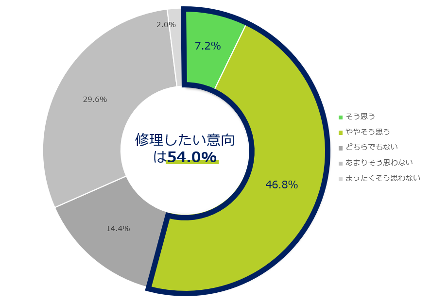 「修理したい意向がある」という回答が54.0%と全体の半数以上を占めました。一方で、修理を選ばなかった理由を見ると、修理そのものへの否定というよりも、費用や手間、時間といった不透明さ・負担感が修理の障壁になっていることがわかります。
