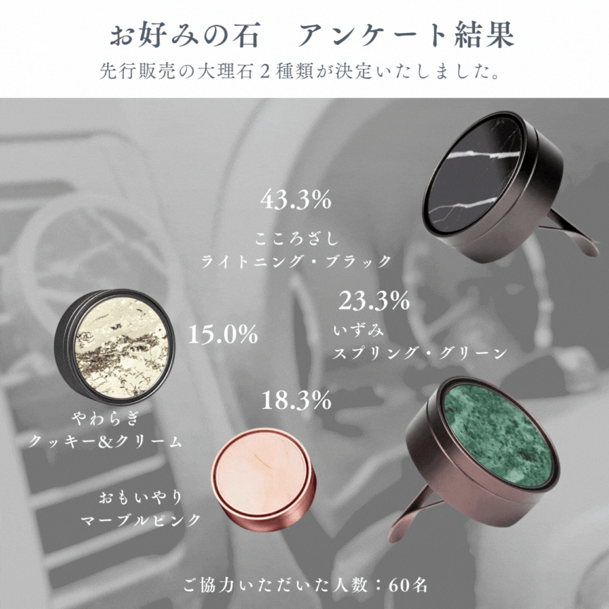 【かほる大理石】贅沢な車内空間。自然の香り・生命の息吹が宿る。車用アロマディフューザー|Makuakeにて6月24日より販売開始。≪約1時間で目標達成!≫
