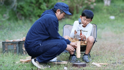 僕には3人の息子がいます。中学生、小学生、未就学の男兄弟なのでお兄ちゃんがやったことは皆が真似をします。そんな中、焚き火をする際に長男が薪割りをしていると次男や三男が近寄っていき、「僕もやりたい」なんてことがよくありました。
