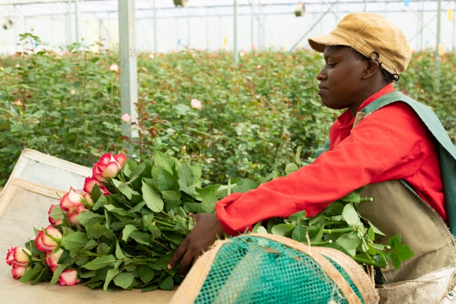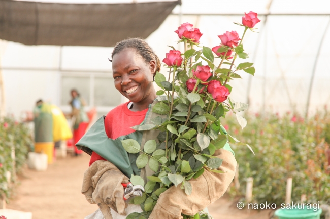 AFRIKA ROSEが扱うバラは市場を通さずに全てケニアのバラ農園からフェアトレードで直接輸入しています。ケニアの首都ナイロビから90km北にあるナイバシャ湖の畔にあるバラ農園では2000名の生産者さんが働いています。シングルマザーの多いケニアでは女性の経済的自立はとても重要であり、バラ農園で働く女性たちは鼻唄を歌いながら愛情を込めてバラを育てています。アフリカ大陸から週に2回、17時間かけて届くバラは新鮮で生命力に満ち溢れています。