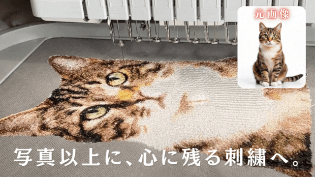 本商品は、写真から刺繍データを作成し、ミシン刺繍で一点ずつ仕上げるフォト刺繍によるオーダーメイドバッグです。[画像2: https://prtimes.jp/api/file.php?c_id=92952&t=animationGifImage&f=88cee70e3a46a120d2be7904670d30a6.gif ]
