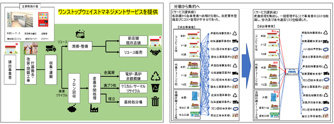エリア毎に産業廃棄物を集約する為に作られた、当社による全国の収集運搬・処理事業者ネットワークは、広域展開しているコンビニ業界、店舗什器業界、飲料業界等多種多様な産業の横断型プラットフォームであり、持続可能社会の基礎的インフラとなりつつある。