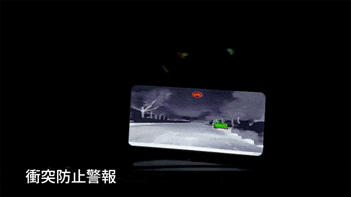 従来のカメラでは視界が悪化する夜間や霧・雨・雪などの悪天候時でも、サーマルカメラが歩行者や障害物を検知し、AIが解析することでドライバーをサポートします。