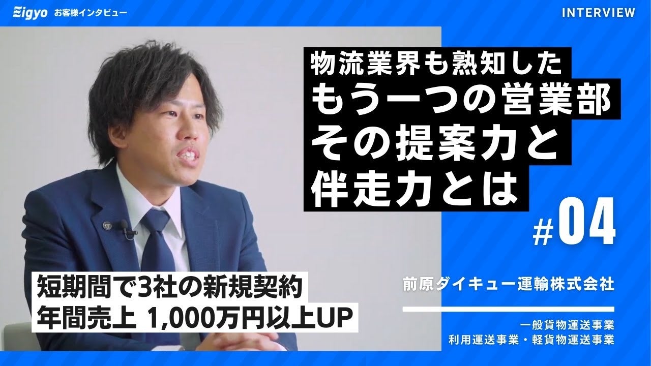 [画像4: https://prcdn.freetls.fastly.net/release_image/176565/7/176565-7-e7ab0cbc16625847f8ef71322cefa1d3-1364x764.png?width=536&quality=85%2C75&format=jpeg&auto=webp&fit=bounds&bg-color=fff ]Eigyo Engineの導入にあたり、前原ダイキュー運輸株式会社では、単なる営業代行ではなく、自社の強みを理解した上で伴走してくれるパートナーであるかどうかを重視しました。営業製作所は物流業界への理解をもとに、同社の事業の本質や「前原ダイキューらしさ」を丁寧にヒアリングし、それを営業戦略として言語化・提案した点が高く評価されました。