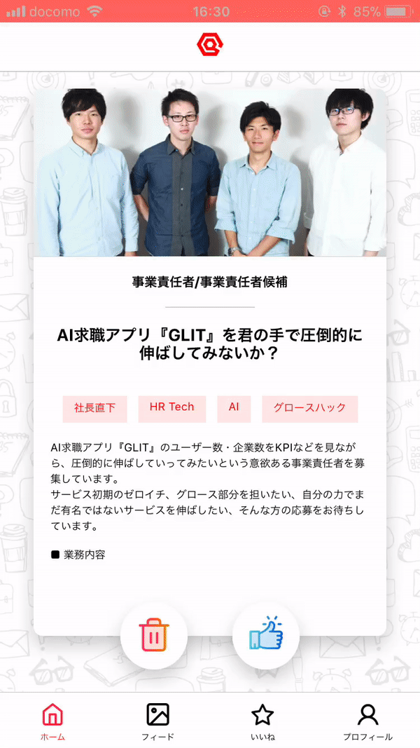 事業内容: AI求職アプリ『GLIT』の企画・開発・運営