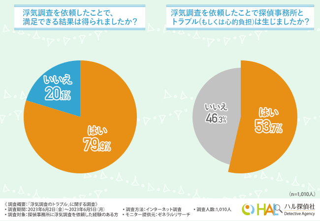 株式会社HAL(本店所在地:東京都新宿区、代表取締役:浅見 俊祐)は、探偵事務所に浮気調査を依頼した経験のある方を対象に、「浮気調査のトラブル」に関する調査を実施しました。