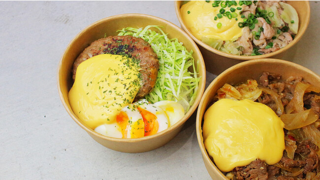お子様から大人までみんな大好きチーズハンバーグをご飯の上に豪快に乗せて丼に!