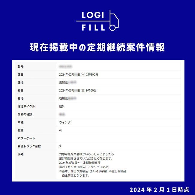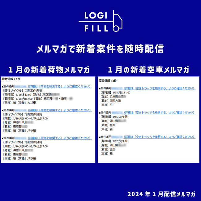 ・「LOGIFILL」へ荷物案件または空きトラック案件を無料期間中に3件以上のご登録で1ヶ月間無料