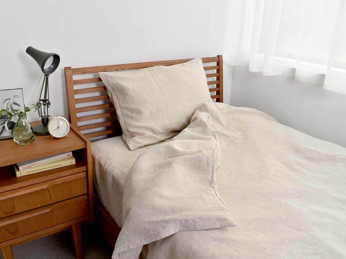 洗うたびに柔らかく肌に馴染み、リネン特有の美しいシワ感が寝室にナチュラルな表情を生み出します。