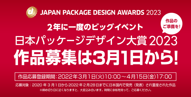 【2年に一度のビッグイベント】「日本パッケージデザイン大賞2023」の作品募集が3月1日より始まります!募集開始に先立ち、応募要項を公開しました。