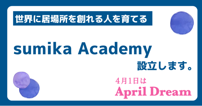 2023年4月1日にsumika Academyを設立し、「子どもたちが世界に居場所を創り出す」ためのプログラムを開始いたします。