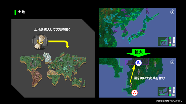 他のプレイヤーの影響で文明は発展し土地の価値も向上し、トークンも多く還元される仕組みです。