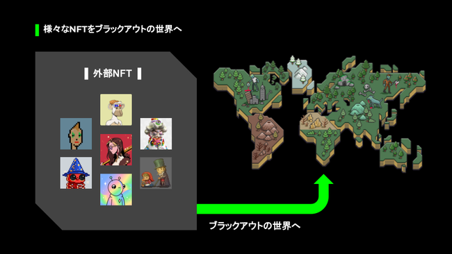 ブラックアウトは他のNFTをブラックアウトの世界へ持ち込むことを可能にします。